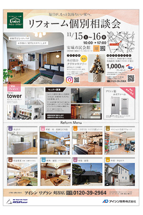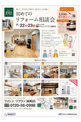 ご希望の方へアイシンリブランの「リノベーション&リフォーム事例集」を無料でお送りいたします。